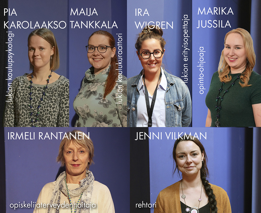 Opiskelijahuoltoryhmään (10.–13. luokat) kuuluvat rehtori, opinto-ohjaaja, erityisopettaja, koulupsykologi, koulukuraattori ja kouluterveydenhoitaja. Opiskelijahuoltoryhmä kokoontuu maanantaisin klo 13–14.