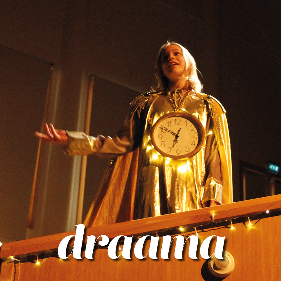 Laadukas draama on tehokas opetusmenetelmä, joka sitoo yhteen monta eri oppiainetta. Draamaa käytetään kaikilla luokka-asteilla aina alaluokilta lukioon asti. Koulumme 300-paikkainen Aurora-sali puvustoineen on päivittäin täynnä touhua. Ei mikään ihme, että koulumme käyneet muistavat juuri näytelmät. Aina. Draamaa, akrobatiaa, varjoteatteria, elävää musiikkia, upeita lavastuksia, puvustuksia ja valosuunnittelua. Ekaluokkalainen on meillä matkalla kohti isoja elämyksiä.