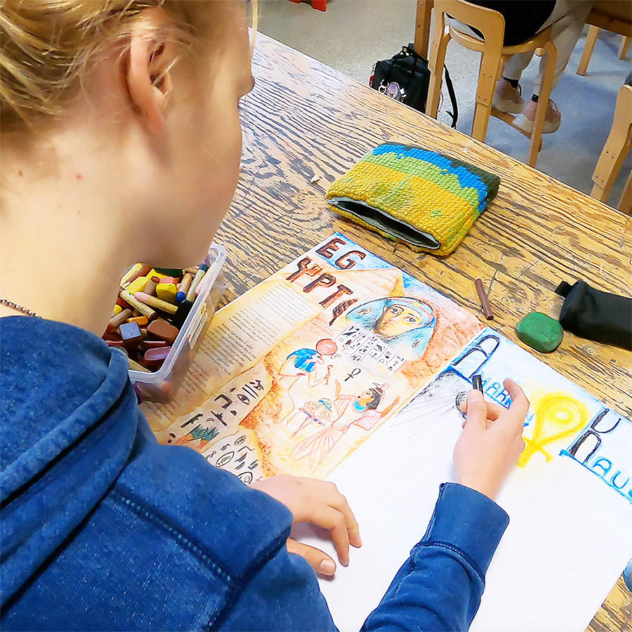 Taide on oleellinen osa opetusta. Varsinaisia taideaineita harjoitetaan koko kouluajan. Taiteen eri muodot, kuten maalaus, piirustus, musiikki, muovailu sekä eurytmia nivoutuvat päivittäiseen työskentelyyn. Eikä ole tarkoitus tehdä kenestäkään taiteilijaa. Voihan niin käydä, mutta taide on meillä lähestymistapa kuten draamakin. Oppilaat valmistavat suuren näytelmän viidennellä, kahdeksannella, yhdennellätoista ja kahdennellatoista luokalla.